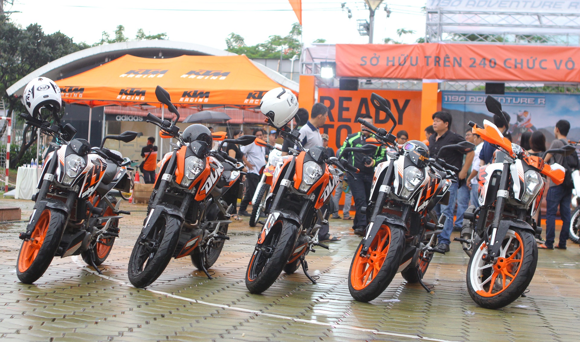 | Dàn xe của những thành viên câu lạc bộ KTM. Kể từ khi vào thị trường Việt Nam, hãng xe Áo đã xây dựng hình ảnh khá tốt, nhờ dòng naked-bike Duke dung tích xi-lanh từ 125 phân khối, 200 phân khối, 390 phân khối... |