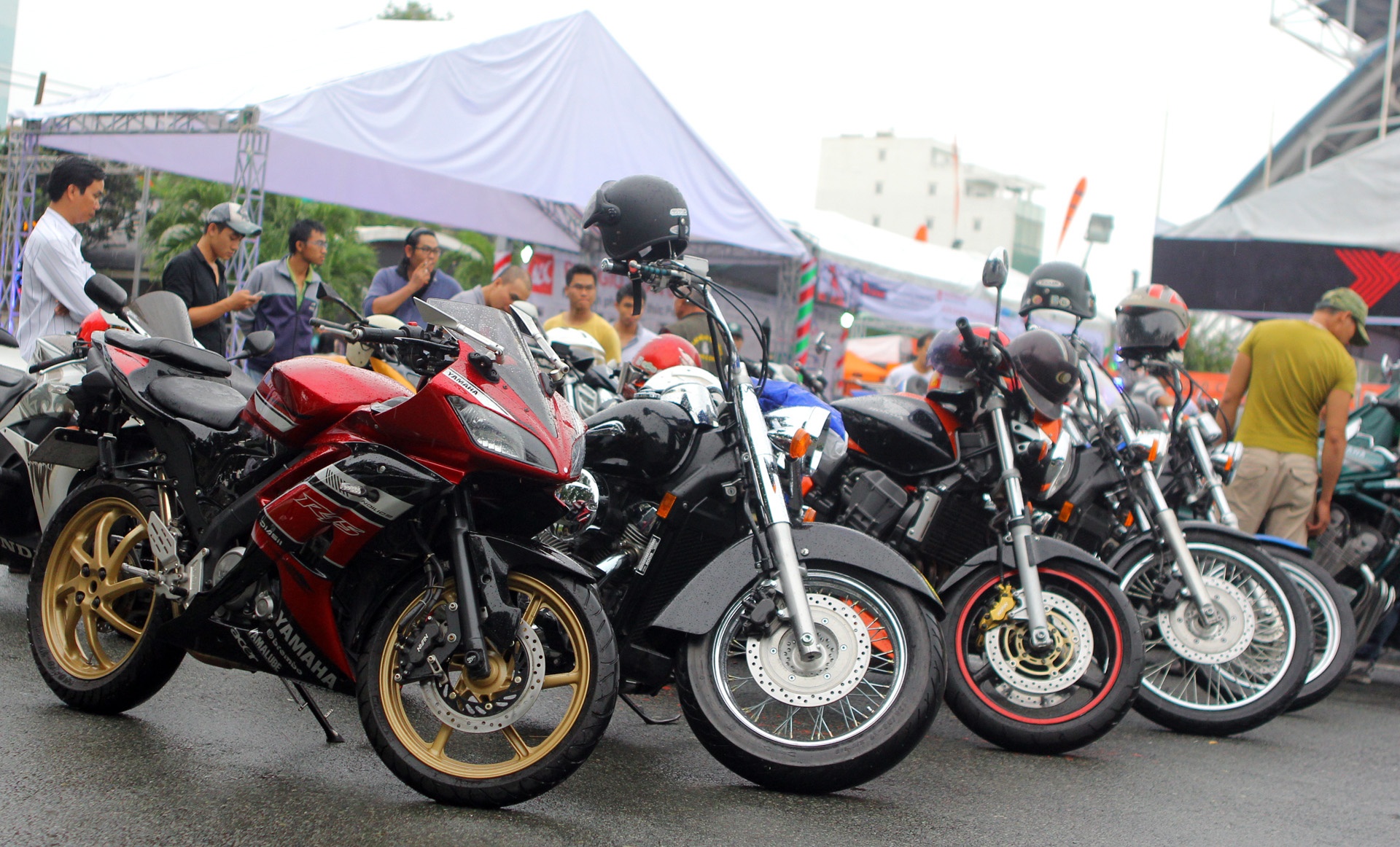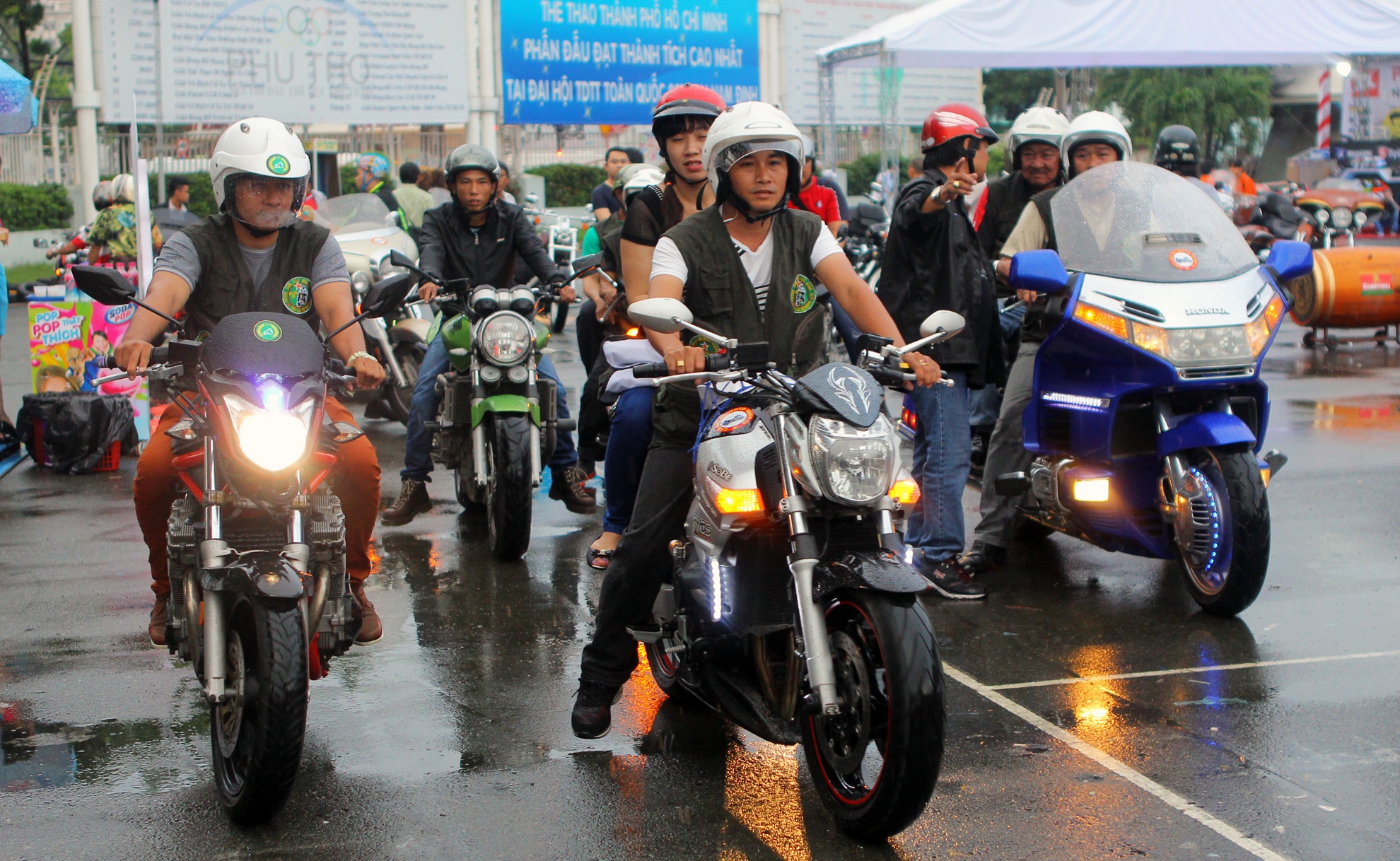 Những người chơi mô tô tại Sài Gòn không ngại mưa gió, chạy những mẫu xế nổ của mình đến tham dự lễ hội mô tô lớn nhất năm nay, Vietnam Motorbike Festival 2014.