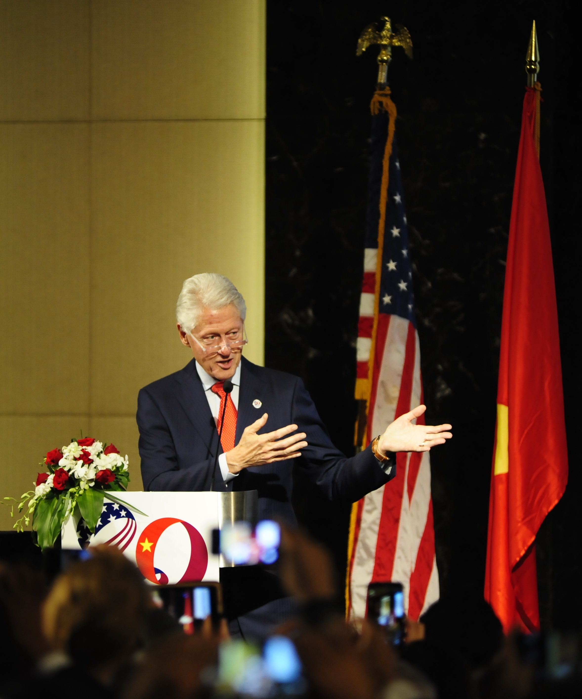 Ông Bill Clinton bước lên bục trong tràng pháo tay kéo dài và bài phát biểu của ông sau đó nhiều lần ngắt quãng bởi sự tán thưởng của cử tọa. Theo ông Clinton, có nhiều lý do khi quyết định bình thường hóa quan hệ với Việt Nam năm 1995, bao gồm lý do cá nhân, chính trị và địa chính trị. Tuy nhiên, ký quyết định bình thường hóa quan hệ với Việt Nam là một trong những thành tựu quan trọng nhất của ông.
