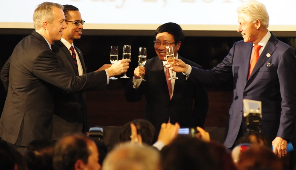 Nhấn mạnh vai trò của cựu tổng thống Bill Clinton, ông Phạm Bình Minh bày tỏ: "Xin cảm ơn ngài đã vượt vạn dặm xa xôi để đến tham dự sự kiện quan trọng này".