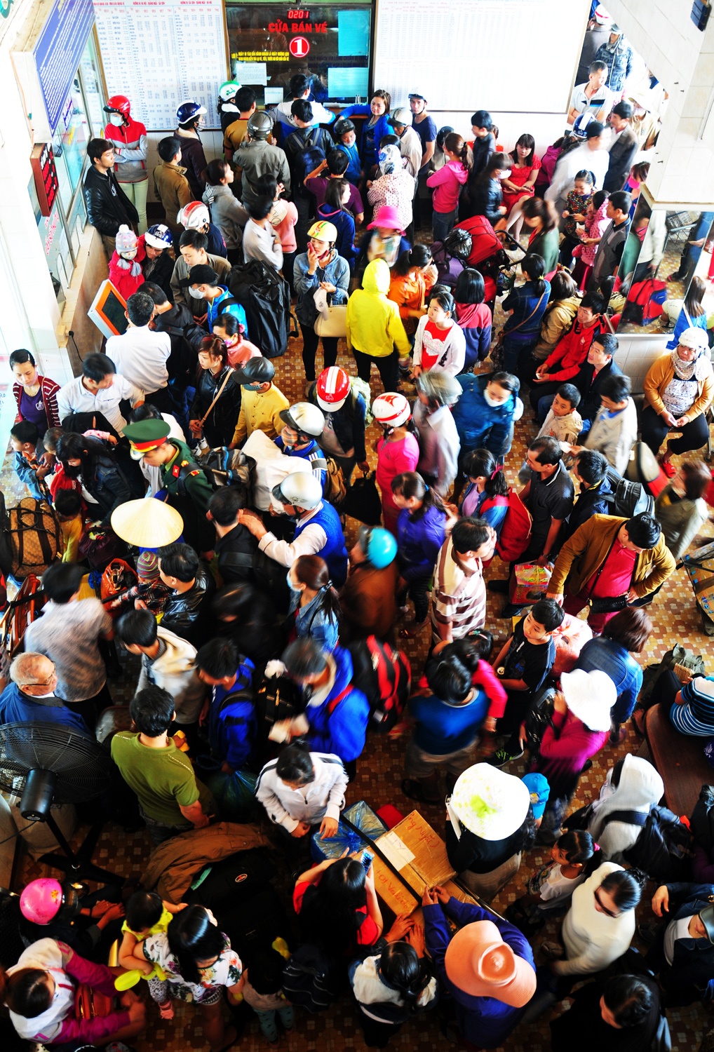 | Trưa 11/2 (mùng 6 tết), hàng nghìn người Quảng Ngãi chen chúc ở sân ga để lên tàu rời quê. |
