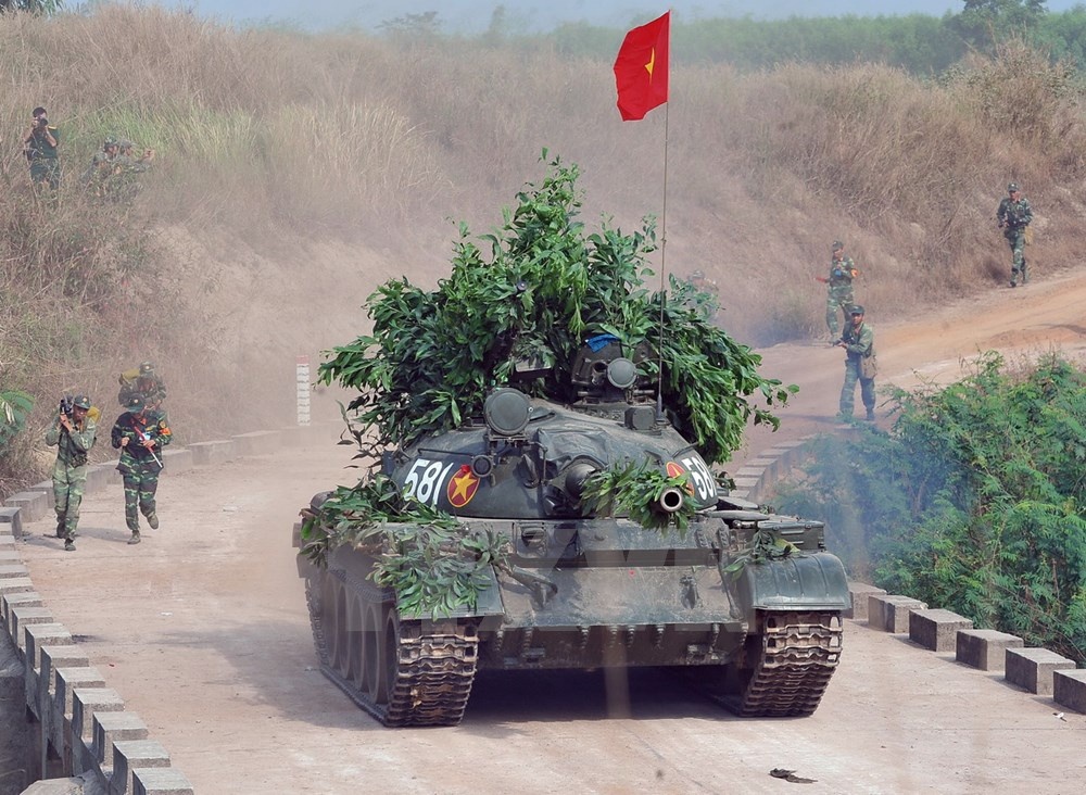 | Xe tăng cùng bộ binh tấn công đánh cửa mở tiêu diệt địch. |