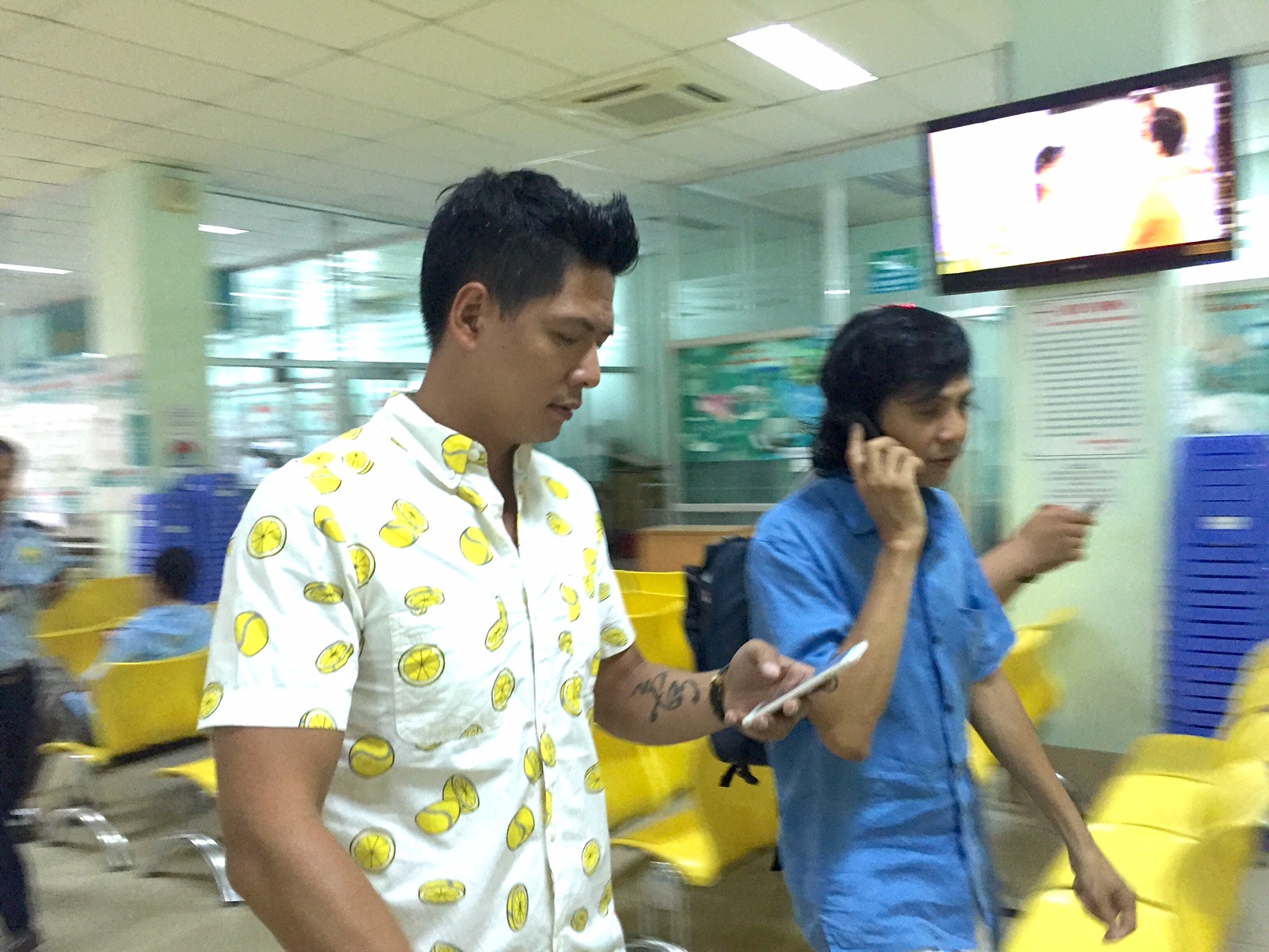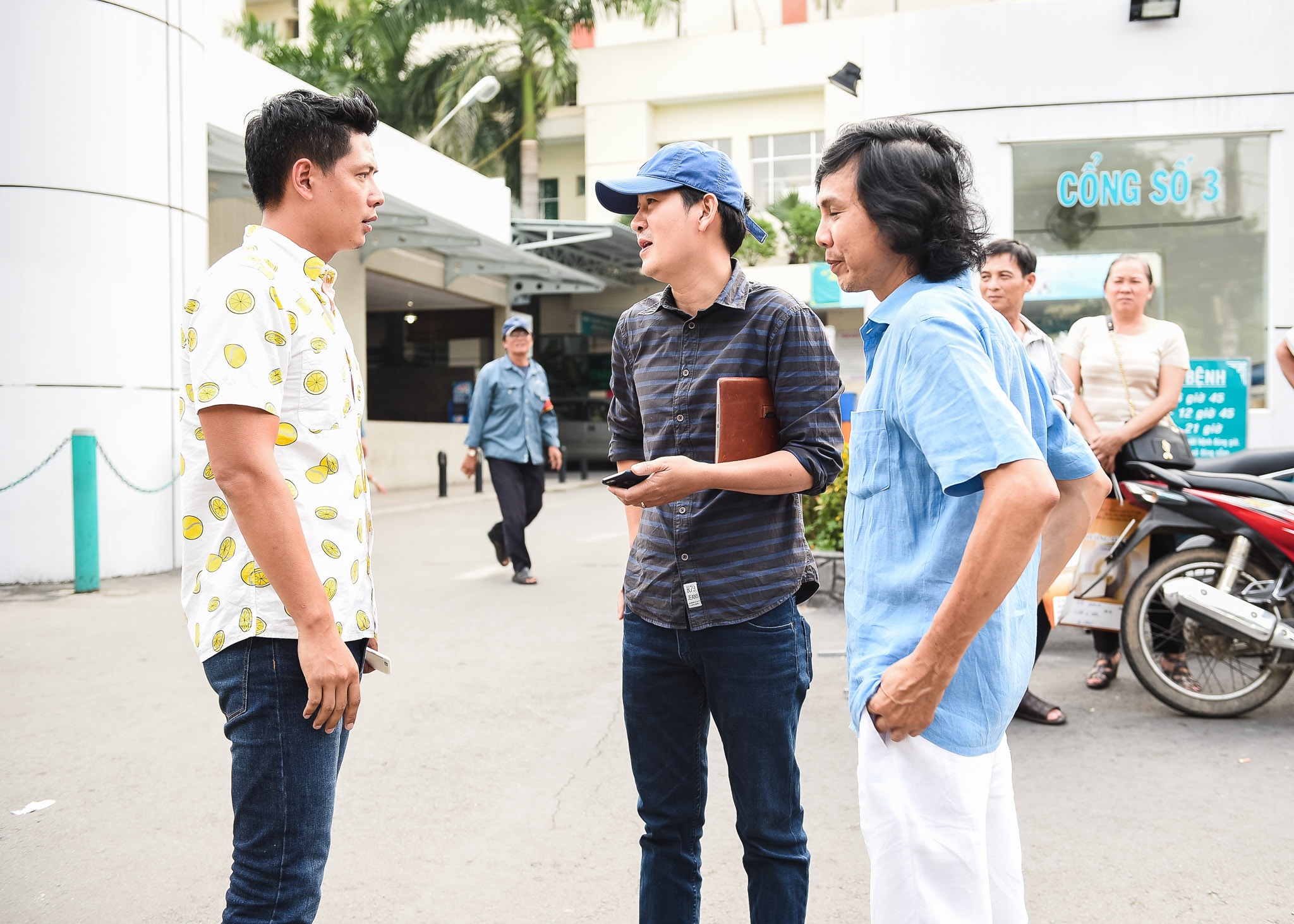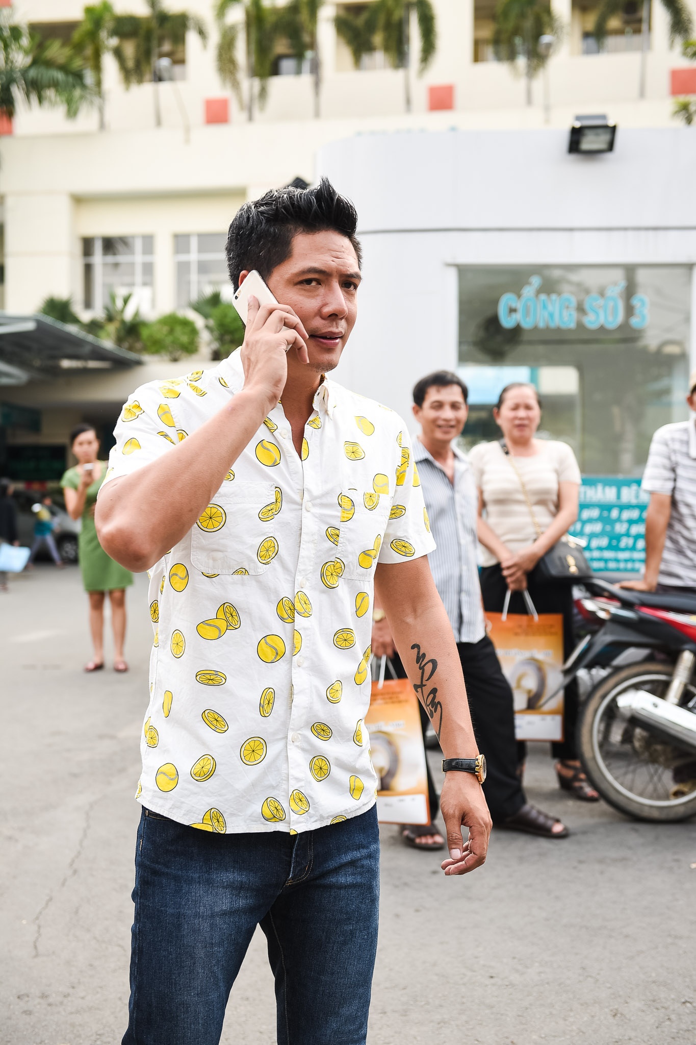 Nam diễn viên Ông trùm đợi 2 người bạn trước cổng bệnh viện. Ông bố 2 con tâm sự, anh xót xa khi nghe tin đàn anh đổ bệnh vì tuổi đời còn khá trẻ. |