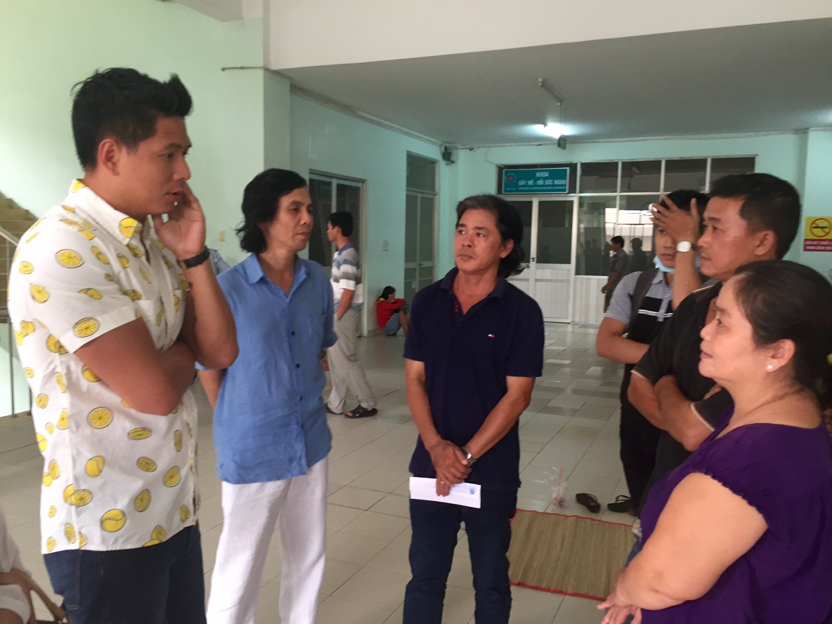 Vì nam diễn viên vẫn nằm trong phòng hậu phẫu, bác sĩ chưa cho phép tiếp xúc với bệnh nhân nên cựu người mẫu đứng ngoài trò chuyện với người thân của đồng nghiệp. Bình Minh chia sẻ: "Tình hình sức khỏe anh Nguyễn Hoàng đang rất nghiêm trọng. Người thân của anh không có điều kiện trong khi kinh phí điều trị khá cao nên tôi mong các mạnh thường quân hãy chung tay giúp đỡ". |