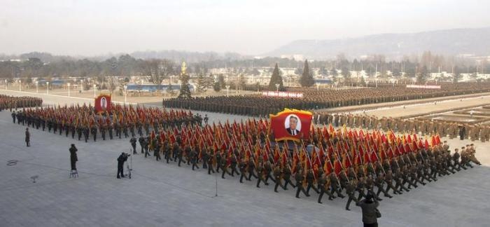 | Binh sĩ Triều Tiên diễu hành trước Cung điện Kumsusan. Ảnh: KCNA |