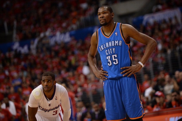 | Tuy nhiên, phong độ chói sáng của Russell Westbrook (0) và chủ công Kevin Durant (35) đã giúp đội khách lội ngược dòng thành công trong hiệp 4. Chung cuộc Thunder vượt qua Clippers với tỷ số 118-112. |