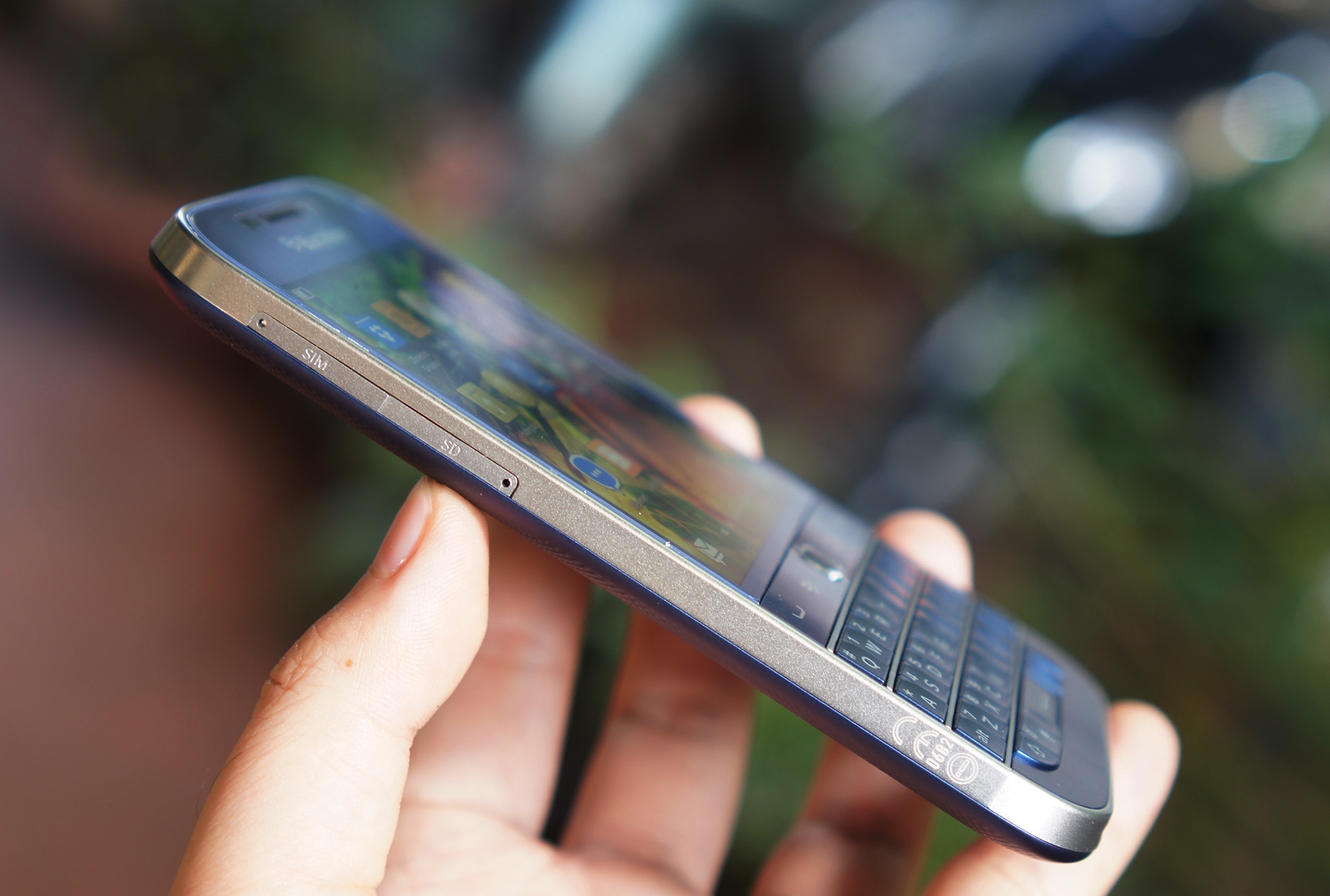 | Máy sử dụng bộ khung nhôm. Nút nguồn đặt chính giữa cạnh trên, giống với thiết kế của Q10 và Z10. |