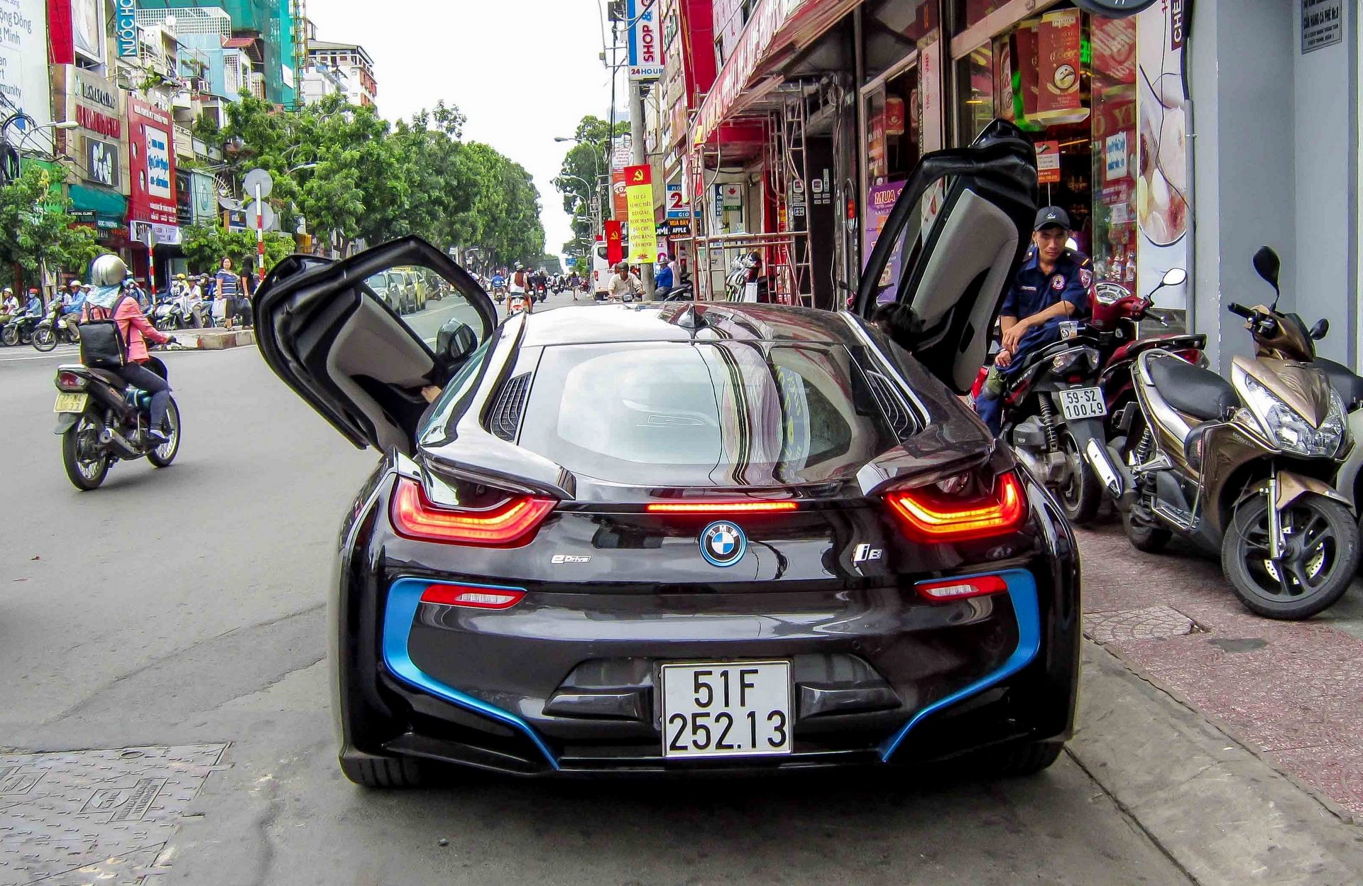 | Sáng 12/7, một trong hai chiếc BMW i8 về Việt Nam đầu tiên đã xuất hiện trên đường phố Sài Gòn. Tuy được nhập về Việt Nam sớm nhất nhưng đây là chiếc thứ tư ra biển số, sau hai chiếc i8 màu trắng biển TP HCM và chiếc cùng màu biển Long An. |
