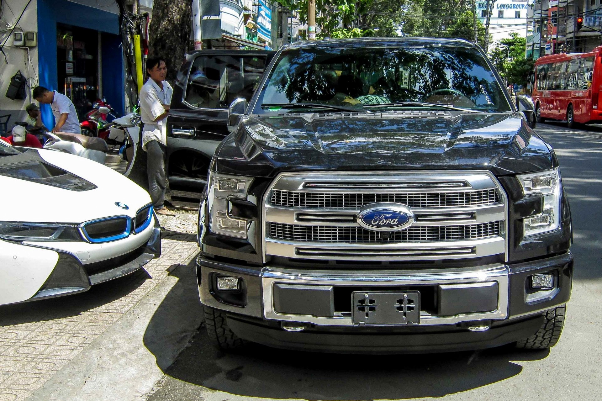 Hồi cuối tháng 5/2015, chiếc Ford F-150 Platinum 2015 đầu tiên xuất hiện tại Việt Nam cùng mức giá khoảng 3 tỷ đồng. Mới đây, chiếc xe loại này xuất hiện cùng BMW i8 trước một showroom chuyên nhập khẩu xe sang, gây chú ý với nhiều người.