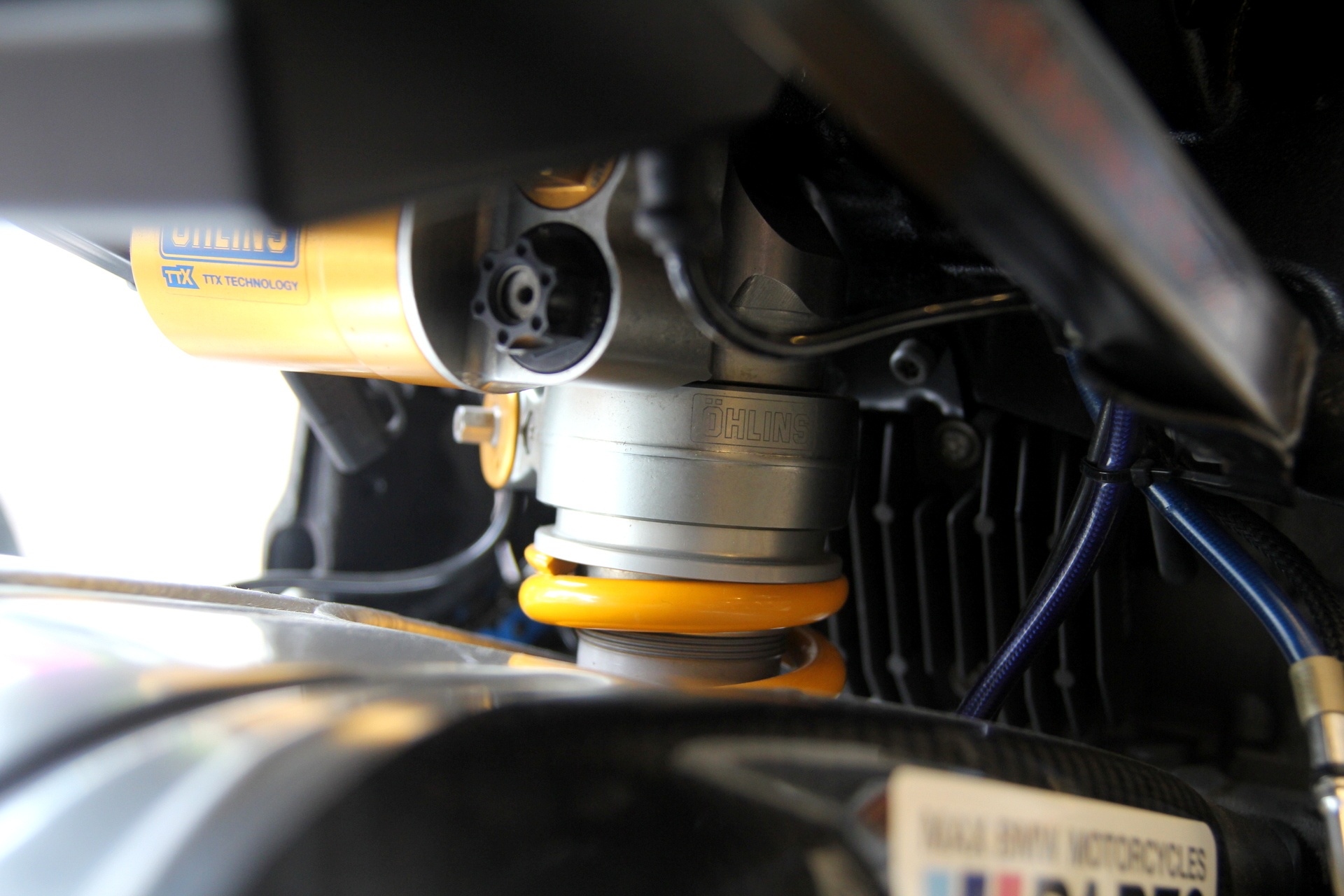 | Thắng đĩa gốm carbon giá trên 4.000 USD, kết hợp với heo dầu Brembo và phuộc ngược Ohlins. |