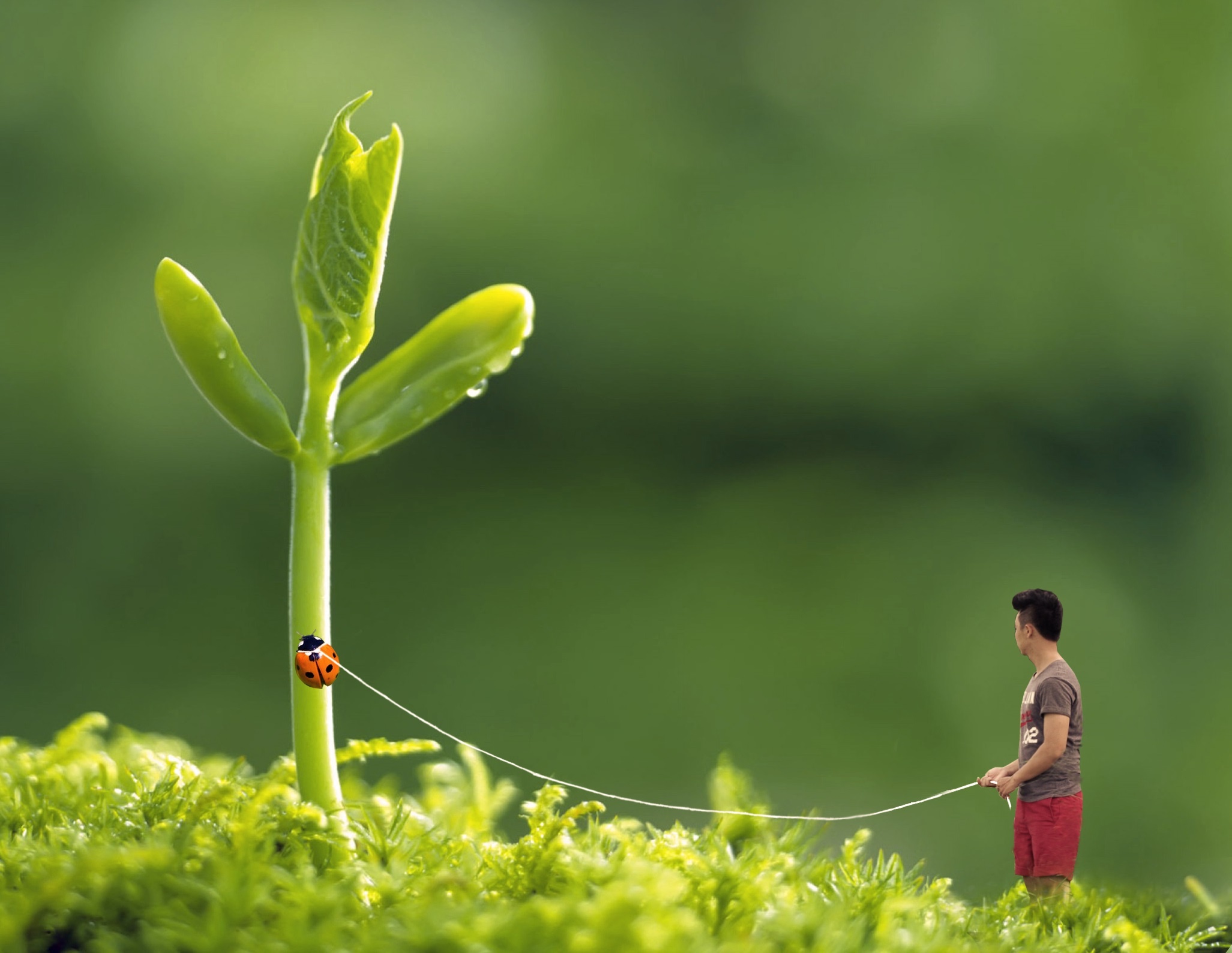 Màu xanh thể hiện sức sống, tươi mới, nhưng hình ảnh nhỏ bé của con người vẫn không cho thấy sự vui vẻ.