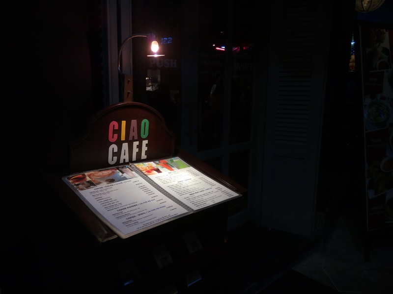 | Với bức ảnh này, người chụp chủ yếu đọ sáng vào bảng thực đơn tại Ciao Café, Nguyễn Huệ. Vì vậy, vùng xung quanh của chủ thể chính sẽ bị tối đi, tạo nên cảm giác trầm mặc cho bức ảnh. Có thể thấy, khi chụp tĩnh vật, màu sắc, khả năng khử nhiễu cũng như độ sắc nét đáng ngạc nhiên đã khẳng định chất lượng camera “mắt vàng” của sản phẩm. |