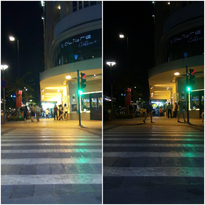 Hai bức ảnh chụp tại cùng một địa điểm. Tại bức bên phải, chế độ phơi sáng đã được giảm xuống -2 để lấy điểm nhấn vào con đường, đúng với ý đồ của người chụp. Prime X đã thể hiện rõ điểm mạnh của mình khi thể hiện chính xác màu tương phản trong môi trường ban đêm, làm giảm sáng, cho nước hình sâu và bớt bị cháy sáng hơn so với tấm ảnh bên trái.