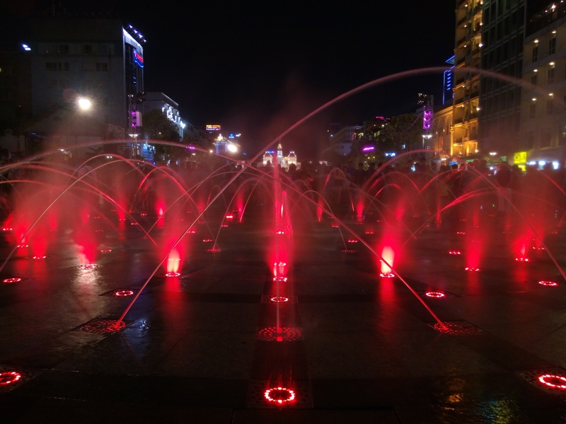 Dù được chụp trong điều kiện ánh sáng khắc nghiệt tại phố đi bộ Nguyễn Huệ (TP HCM), sân khấu nhạc nước nơi đây vẫn hiện lên huyền bí và kỳ diệu qua camera của Prime X.