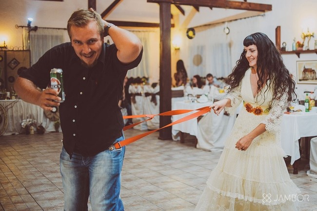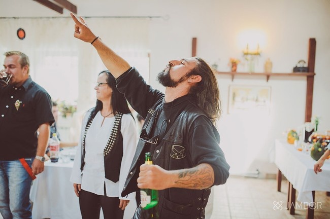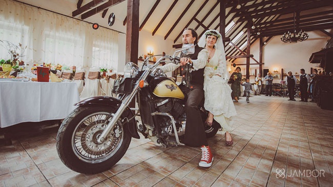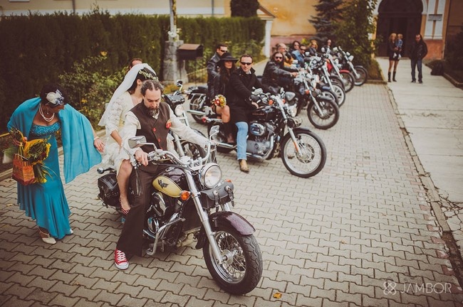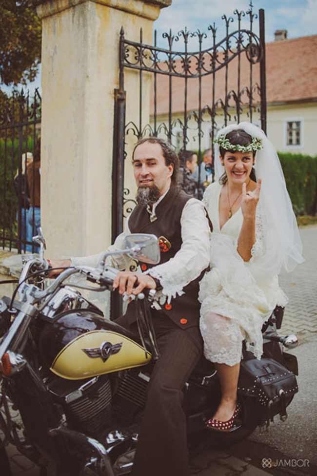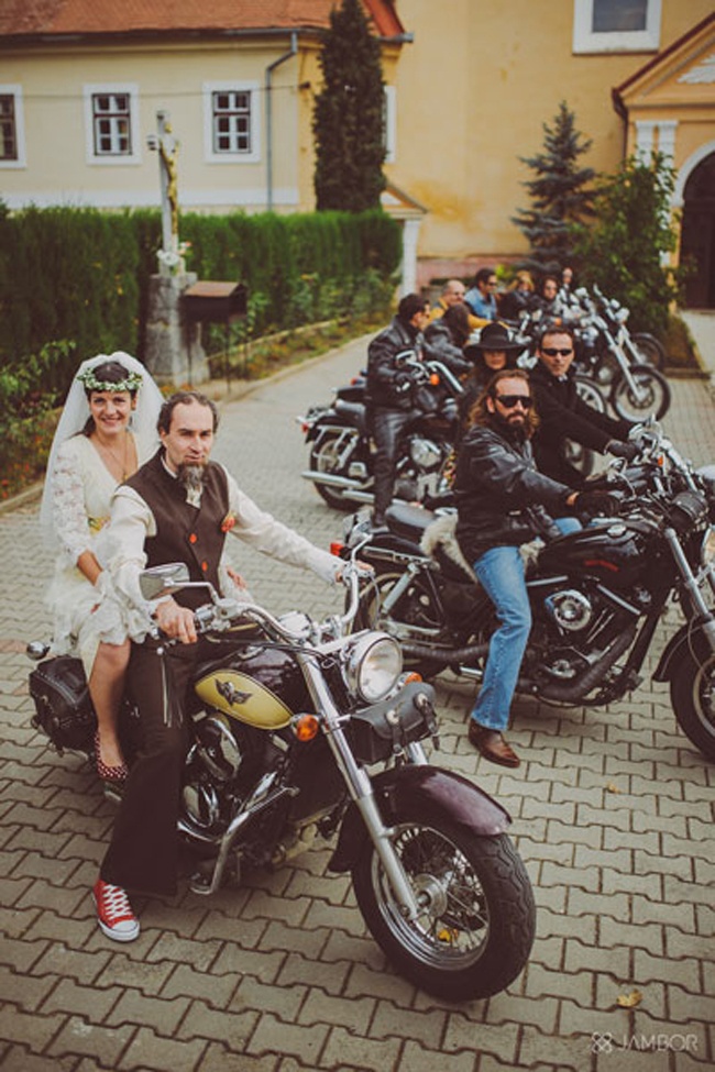 Sau khi kết thúc hôn lễ có phần thủ tục tại nhà thờ, cặp đôi cùng bạn bè đã cưỡi mô tô đến địa điểm tổ chức tiệc. Thậm chí, trong bộ ảnh cưới của cặp đôi đến từ Romania, còn có cảnh cô dâu, chú rể và bạn bè quậy phá trong bữa tiệc. Đây quả là ý tưởng hoàn toàn khác biệt so với những bộ ảnh cưới khác.