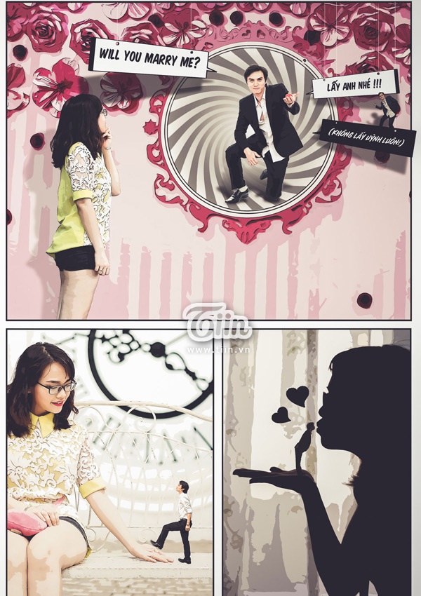 | Bộ ảnh của cô dâu Phan Bảo Ngọc (SN 1991) và chú rể Nguyễn Tuấn Hà (SN 1986, là bác sĩ) như một câu chuyện thần tiên. Đó là tình yêu giữa cô gái (người bình thường) và chàng trai người tí hon đến từ hành tinh khác. |