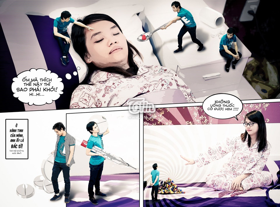 Lúc cô gái ốm, chàng trai nhiệt tình chăm sóc. |