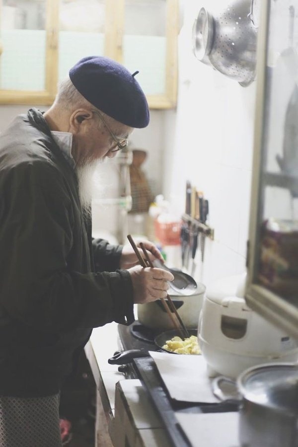 Bà là thợ may. Quần đùi và áo may ô của ông là do bà may cách đây khoảng 20 năm, giờ ông vẫn mặc. |