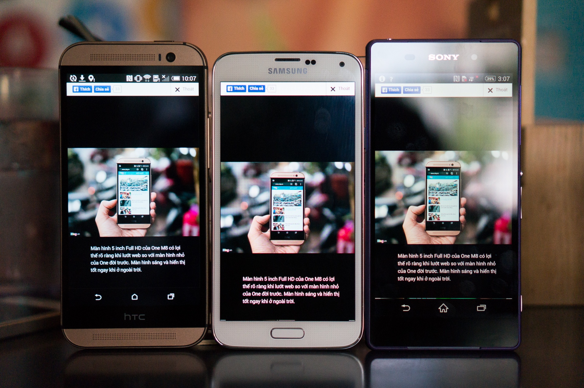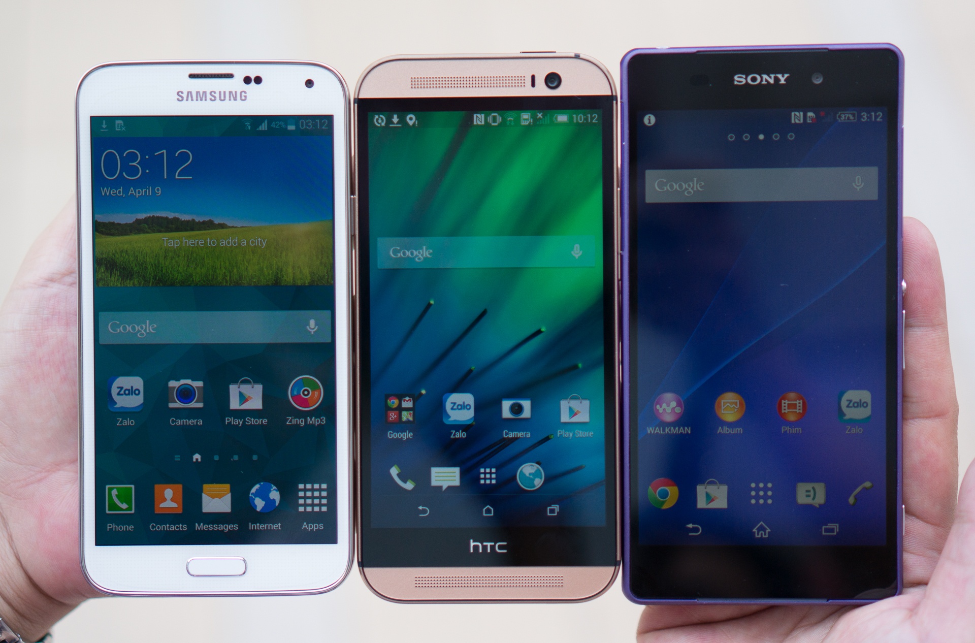 Bộ ba One M8, Xperia Z2 và Galaxy S5 đọ dáng