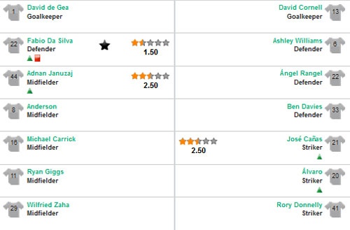 Trong trận thua 1-2 của MU, Fabio là một trong những cầu thủ gây thất vọng nhất khi chỉ được trang Goal chấm điểm 1,5. Đây cũng là điểm số của hai tiền vệ Shinji Kagawa, Tom Cleverley và hậu vệ Chris Smalling. Trận thua thứ 5 trên sân nhà Old Trafford kể từ đầu mùa giải khiến Quỷ đỏ đánh mất hình ảnh của đội bóng lớn ở xứ sở sương mù.