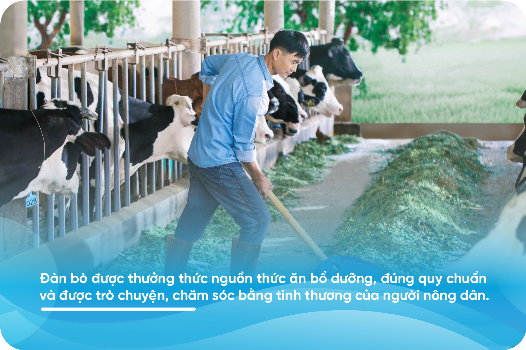 | Từ những buổi tập huấn của Cô Gái Hà Lan, người nông dân hiểu rằng sức khỏe bò và năng suất sữa phụ thuộc nhiều vào dinh dưỡng và điều kiện sống. Họ luôn cố gắng đảm bảo bò được ăn uống đầy đủ và sống thoải mái đúng chuẩn. |