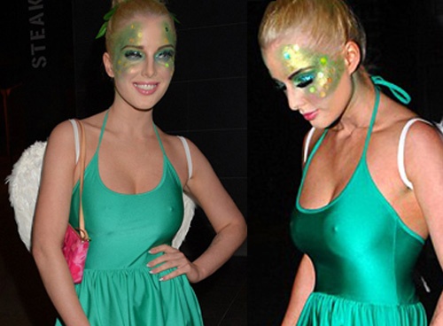 | Dễ nhận ra là người đẹp từng khiến Sinclair đảo điên táo bạo thả rông vòng 1, để lộ nhũ hoa lấp ló sau lớp vải mỏng để dự Halloween. |
