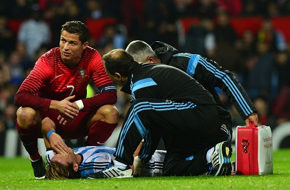 Ronaldo tỏ ra ân hận khi khiến đối thủ phải nằm sân.