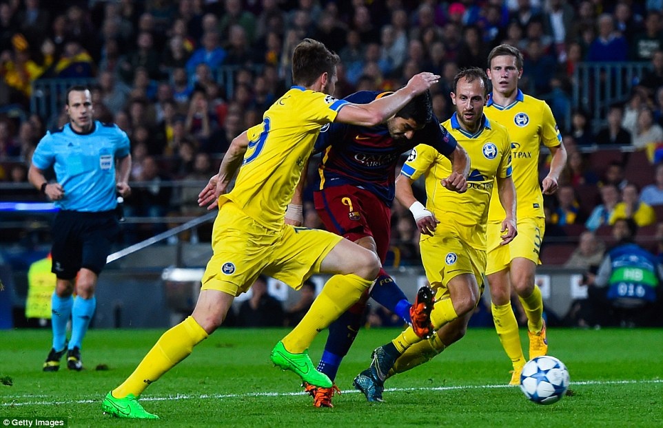 | Phút 60, Neymar chuyền bóng vào trung lộ cho Suarez. Cựu tiền đạo Liverpool xử lý bóng một nhịp trước khi dứt điểm vào góc gần nâng tỷ số lên 2-0 cho Barca. |