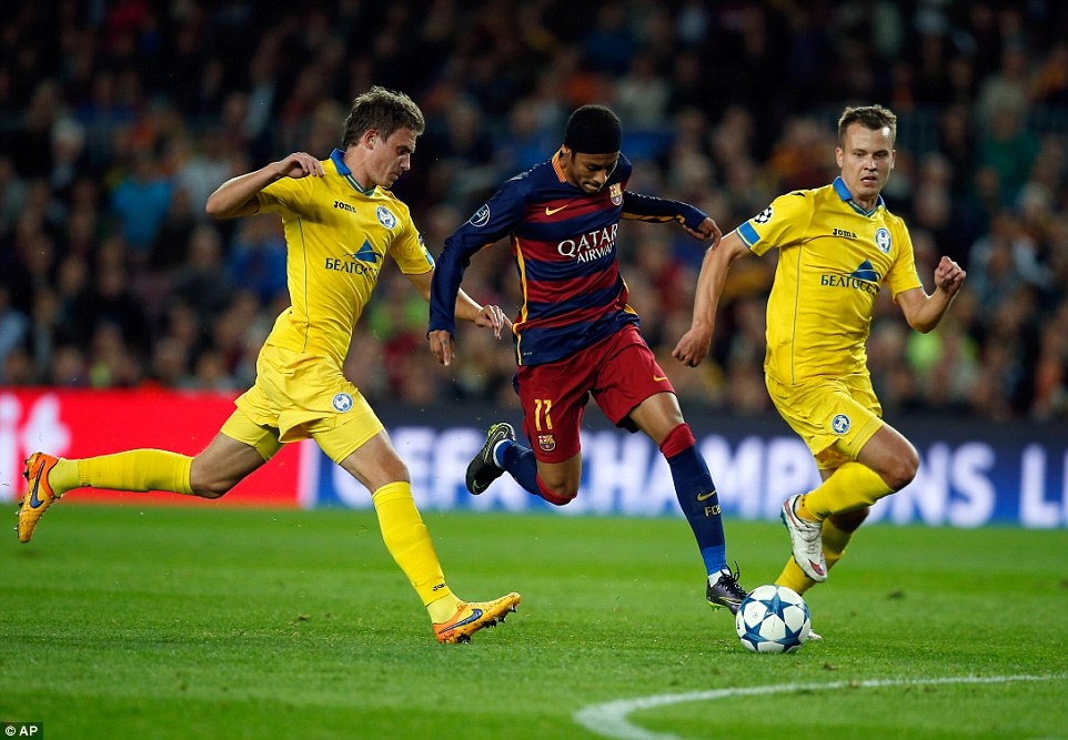 | Trong cuộc tiếp đón BATE Borisov ở lượt trận thứ 4 Champions League, Neymar lập cú đúp cùng một pha kiến tạo góp phần vào chiến thắng 3-0 của gã khổng lồ xứ Catalunya. |