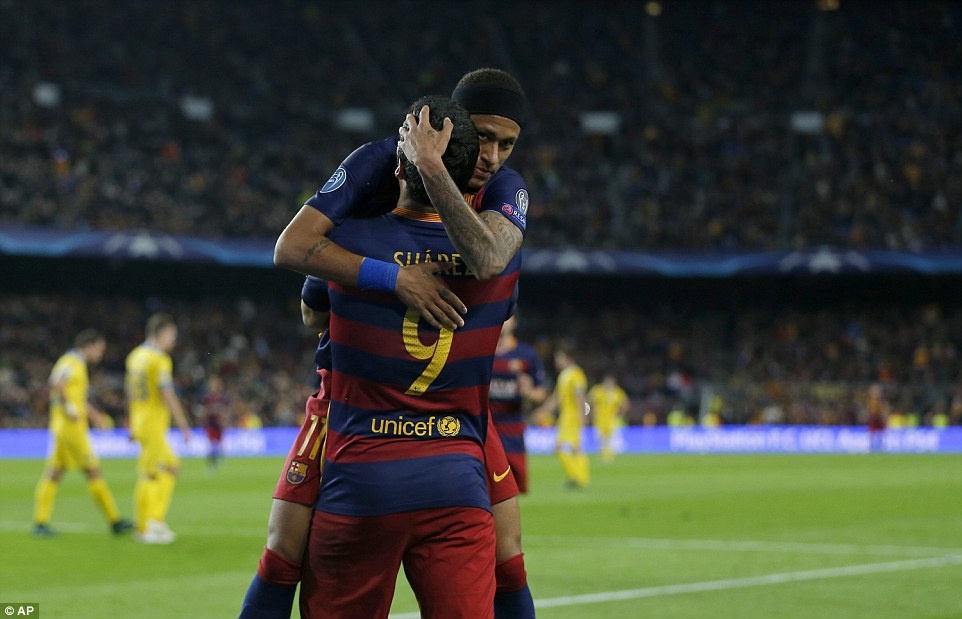 | Phong độ thuyết phục của cặp tiền đạo Luis Suarez - Neymar giúp các culé tạm quên sự vắng mặt của Lionel Messi trong thời gian qua do chấn thương. |