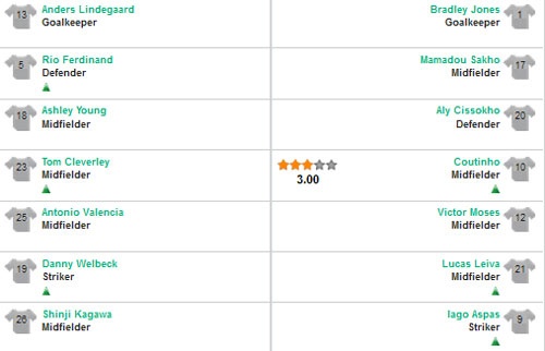 Điểm của cầu thủ ra sân trong trận M.U – Liverpool.