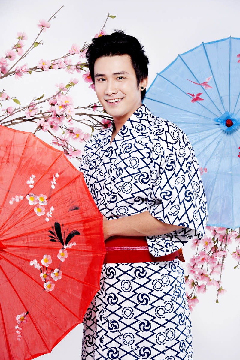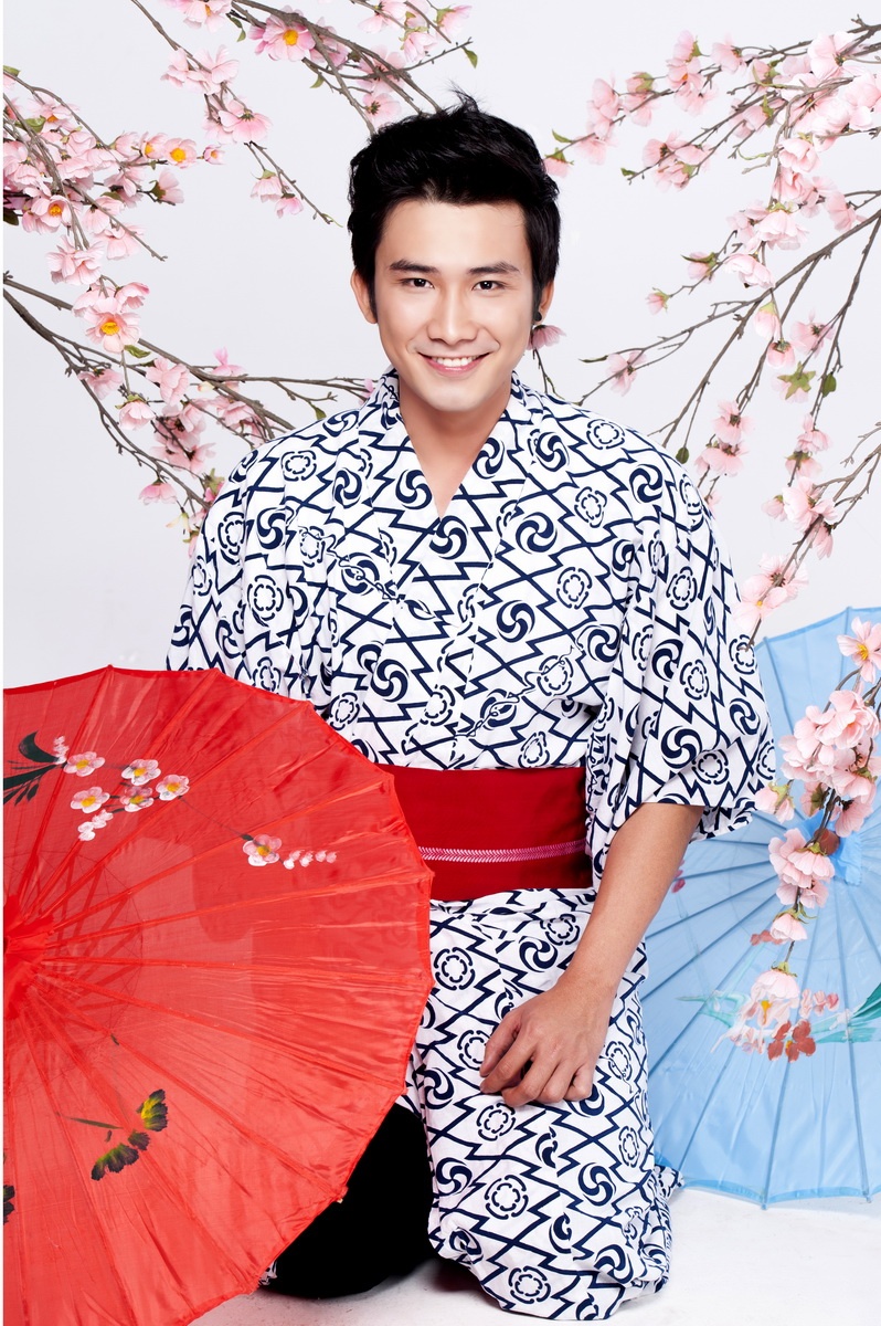 | Ngoài hình ảnh người nông dân miền Tây chất phác, Chí Thiện còn hóa thân thành chàng Nhật Bản và Hàn Quốc trong bộ hình chào xuân đặc biệt này. |