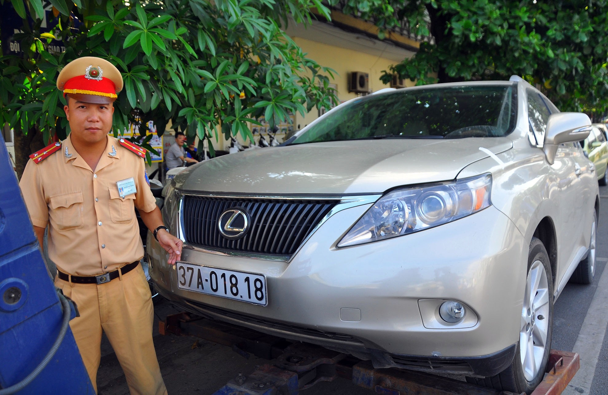 | Chiếc Lexus sử dụng biển giả bị phát hiện trên phố. Ảnh: Hoàn Nguyễn. |