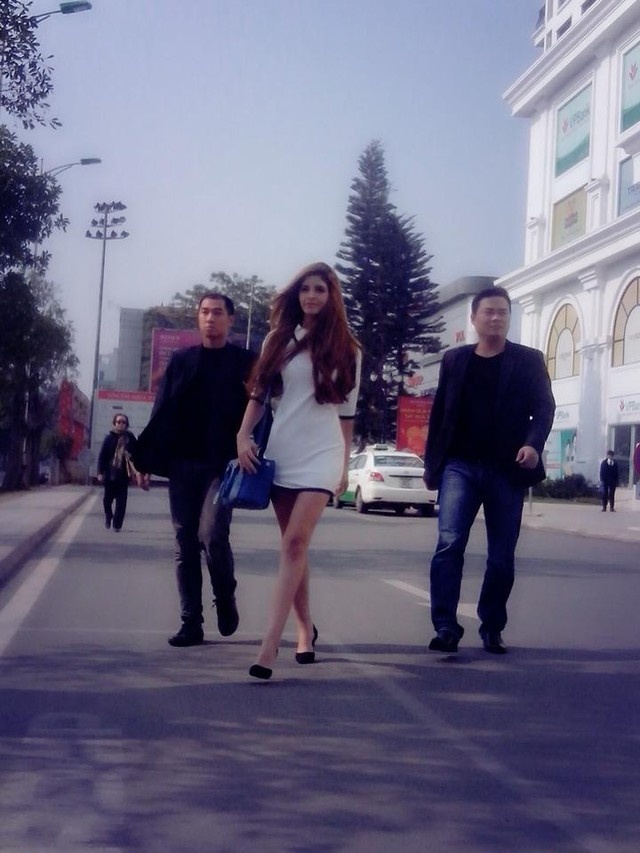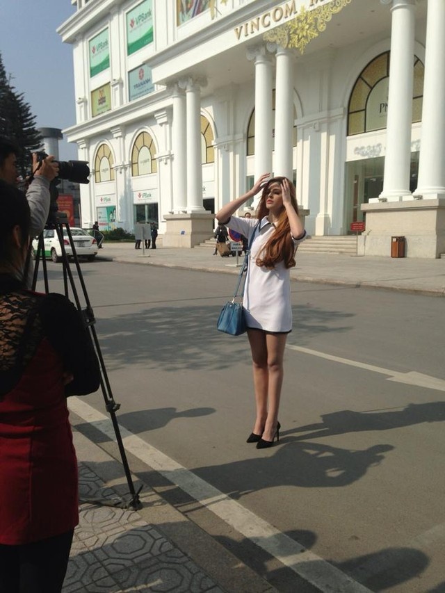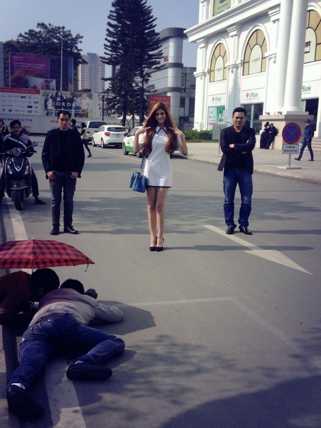 Andrea mới chia sẻ vài tấm ảnh hậu trường của một buổi quay hình cùng với ekip. Trong đó có 2 bức ảnh gây ấn tượng với nhiều người, là hình ảnh người quay phim cùng trợ lý nằm bò dưới lòng đường quay hình cho Andrea.