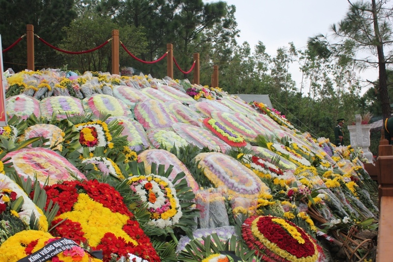 | Có rất nhiều vòng, bó hoa đặt dưới chân mộ Đại tướng. Bình quân cứ 2 ngày thì lực lượng làm nhiệm vụ tại đây phải dỡ bỏ những vòng hoa này do quá nhiều, không có chỗ để cho những đoàn vào viếng sau. |
