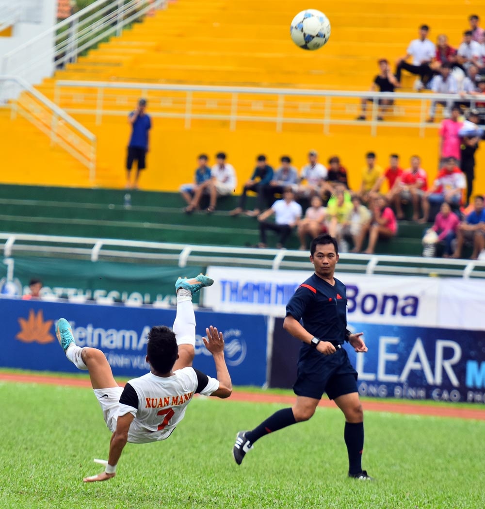 Xuân Mạnh chơi năng nổ và tạo ra nhiều cơ hội, anh suýt ghi bàn từ pha móc bóng cầu âu.