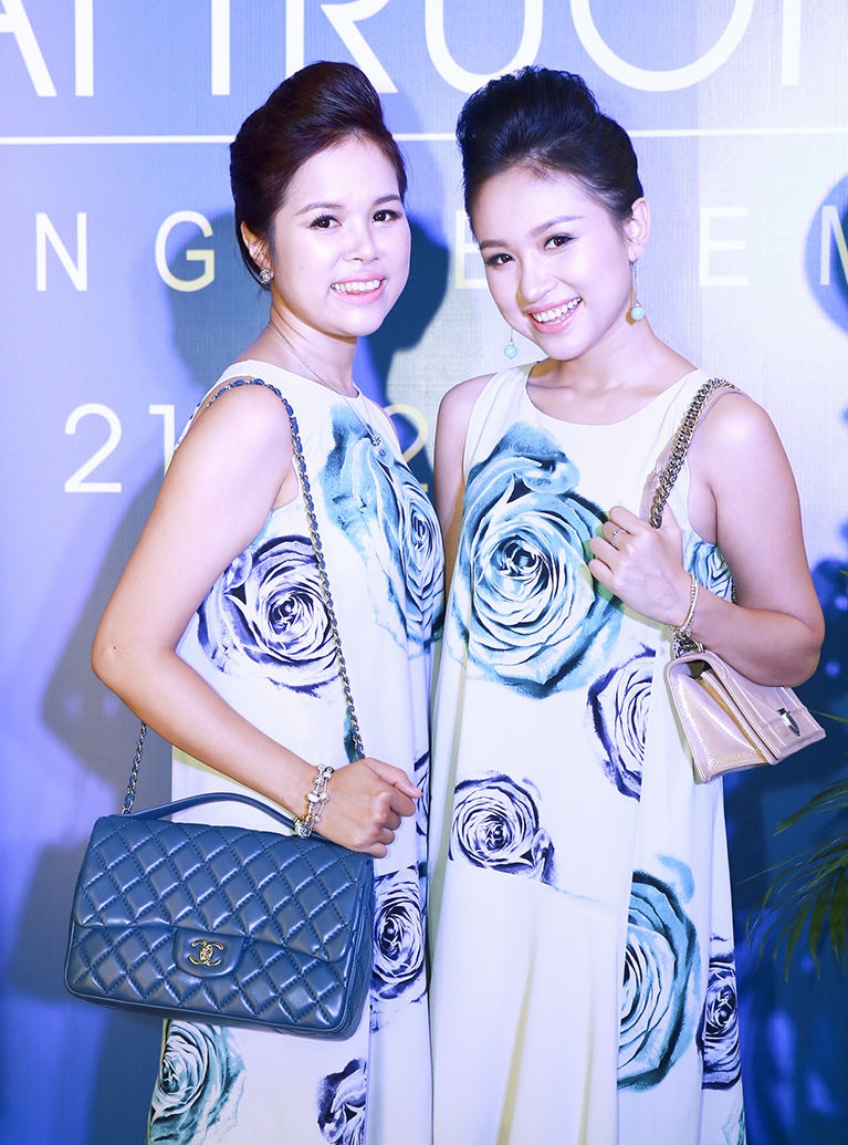 | Trong những vị khách tới chung vui, có bố mẹ chồng cũ của Thanh Vân. Nữ MC gọi cả hai là "ông bà nội của Bin". Họ đến từ sớm để chúc mừng con dâu và giúp cô chăm sóc bé Bin khi Vân Hugo bận tiếp khách. Chị em nữ diễn viên Hoa nở trái mùa (mặc váy đôi) chụp ảnh cùng bố mẹ chồng cũ của Thanh Vân. |