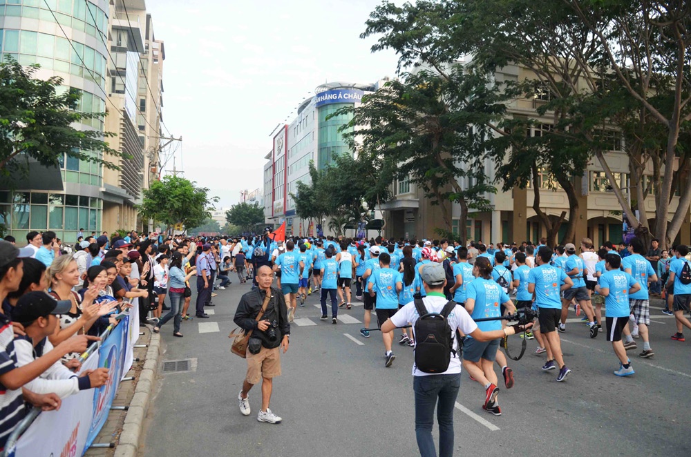 Chinh phục cầu phú Mỹ có hơn 5.000 vận động viên tham gia, trong đó, có rất nhiều em nhỏ, người già và cả người nước ngoài gửi hồ sơ về.