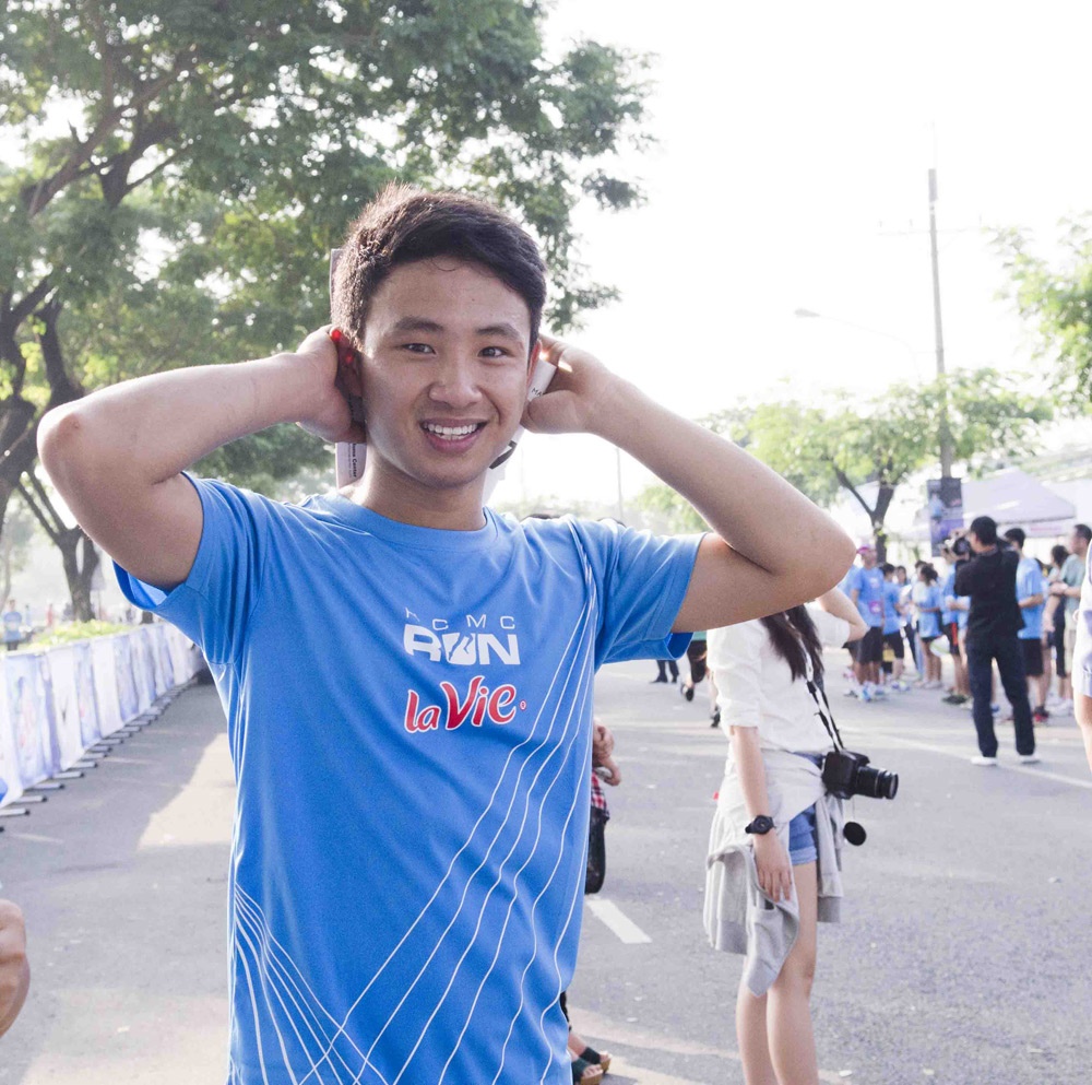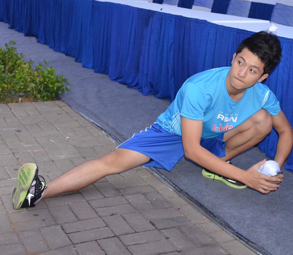 Hot boy Harry Lu vận động trước khi bắt đầu thi chạy.
