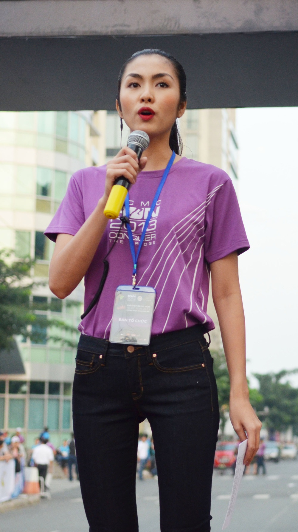 | “Ba tháng qua, dù thời gian không dài, nhưng với những người tổ chức giải việt dã HCMC Run 2013 – Chinh phục cầu Phú Mỹ là một khoảng thời gian quan trọng và ý nghĩa. Chúng tôi đã cố gắng quyết tâm để có được những hoạt động tích cực nhất, nhằm nhân lên một phong trào rèn luyện thể lực ý nghĩa trong cộng đồng và hy vọng sẽ ngày càng đi sâu và phát triển tại cơ sở" - Tăng Thanh Hà phát biểu. |