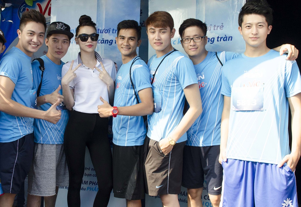 | Hồ Ngọc Hà chụp hình với dàn hot boy trước khi cuộc thi bắt đầu. Tham dự buổi lễ, với tư cách đại sứ của nhãn hàng tài trợ, Hồ Ngọc Hà cũng đã lên trao giải cho các vận động viên. |