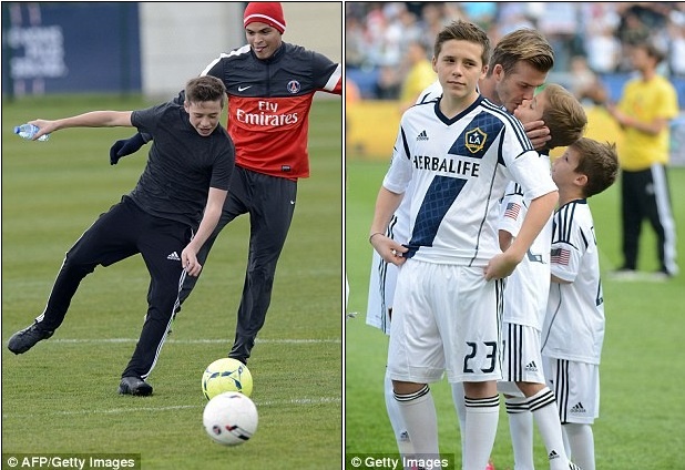 | Brooklyn tập với hậu vệ hàng đầu thế giới Thiago Silva ở PSG và tập cùng ông bố nổi tiếng tại CLB LA Galaxy (Mỹ). |