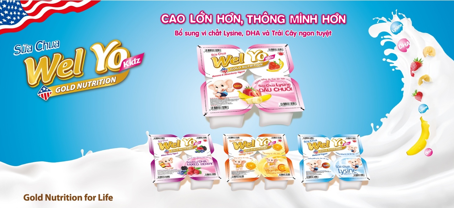 Sữa chua Wel Yo Kidz là dòng sản phẩm được Viện Dinh dưỡng Wel Nutrition Hoa Kỳ nghiên cứu phát triển theo yêu cầu tăng trưởng của trẻ em với thành phần chất dinh dưỡng và mùi vị phù hợp với trẻ.