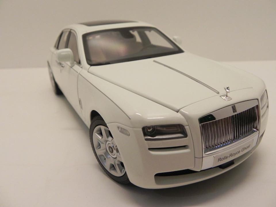 | Mô hình xe Rolls-Royce Ghost màu trắng. Chiếc xe có thiết kế như thật với đường nét mô phỏng chi tiết, sơn tĩnh điện. Toàn bộ khung xe đúc bằng kim loại, nội thất và lốp xe làm từ cao su tự nhiên, ống xả và lưới tản nhiệt được xi bóng. Đặc biệt, trong xe có lót thảm. |
