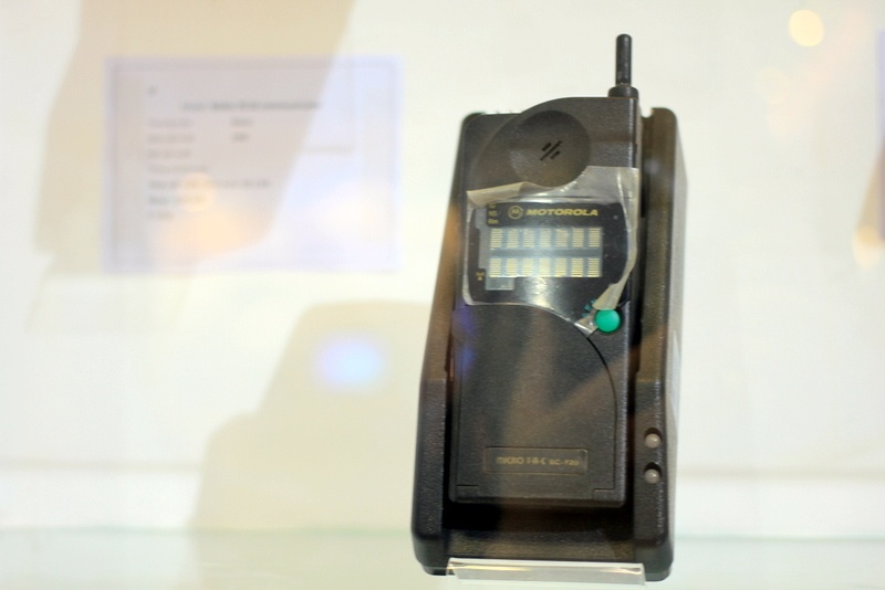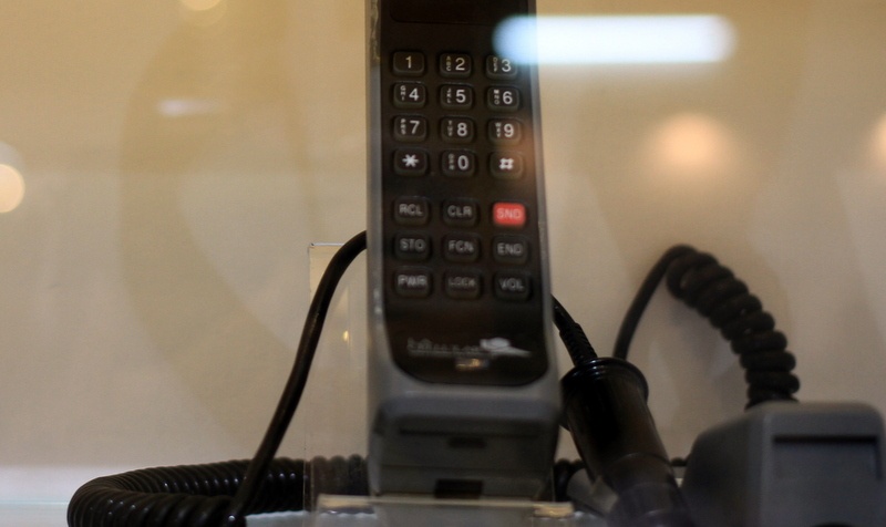 | Đây là chiếc DYNA Tac 8000X, mẫu di động sản xuất năm 1983, là một trong những chiếc điện thoại đầu tiên trong lịch sử ngành mobile. Model từ Motorola có pin để chế độ nghỉ được 8 giờ, lưu danh bạ 30 số điện thoại |