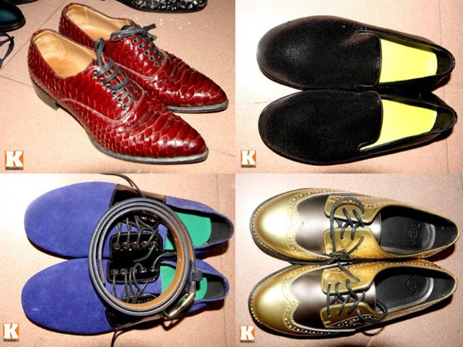 | Những đôi giày hiệu có màu sắc và kiểu dáng độc đáo của ''ông hoàng nhạc Việt''. |