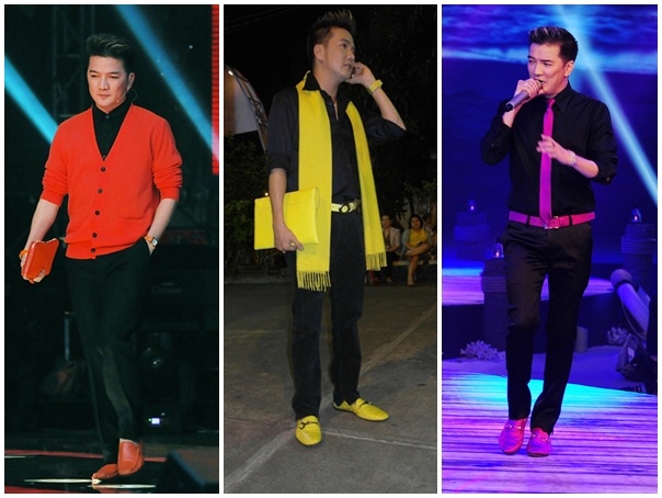 | Những đôi giày nổi bật giúp anh hoàn thiện phong cách. Phụ kiện giày, túi phối hợp ăn ý cùng trang phục, giúp nam ca sĩ nổi bật trên sân khấu. |