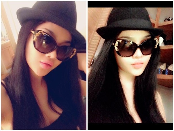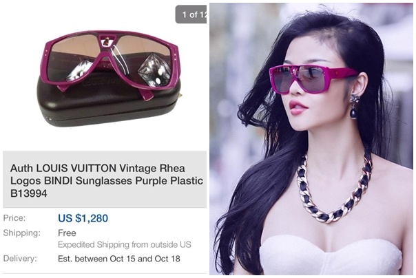 | BST kính râm của người đẹp có nhiều mẫu mã, kiểu dáng hiện đại, sành điệu. Chiếc kính có họa tiết hiện đại trẻ trung phù hợp với phong cách gợi cảm của Julia Hồ, thiết kế của Louis Vuitton có giá 750 USD (hình phải). |