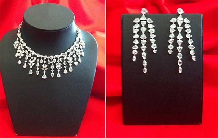 | Trong các chuyến công tác nước ngoài, người đẹp đều mang theo những bộ trang sức đắt đỏ. Trong ảnh là phụ kiện mà cô dùng khi sang dự show thời trang tại Pháp, bộ kim cương đắt giá của nhà thiết kế nổi tiếng người Italia giá 12 tỷ đồng. |