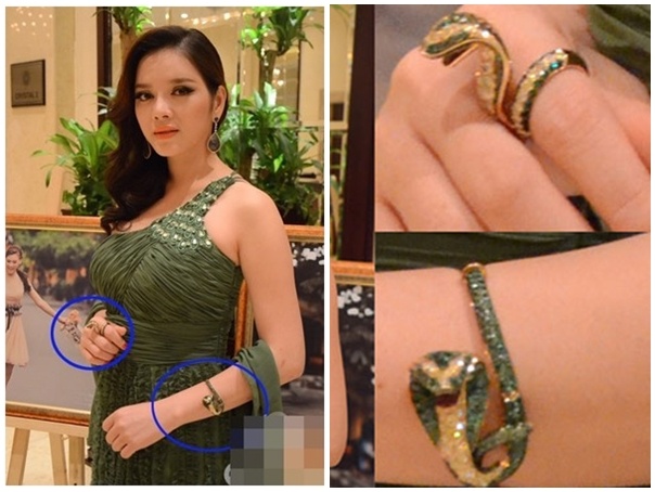 Lý Nhã Kỳ cũng từng khoe vòng đeo tay giá 81 ngàn USD (1,6 tỷ đồng), nhẫn có giá gần 40 ngàn USD (600 triệu đồng), còn đôi trị giá hơn 40 ngàn USD (800 triệu dồng) trong một sự kiện tổ chức tại TP.HCM.